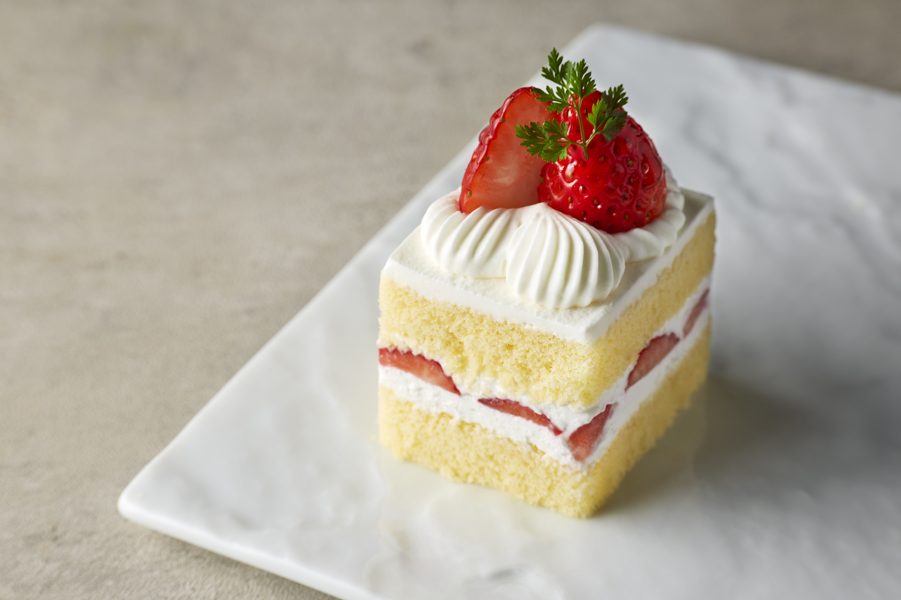 コクがありながら、あっさりとした甘さ控えめのクリームと、ふんわり軽い口溶けのスポンジがおいしさの決め手です。