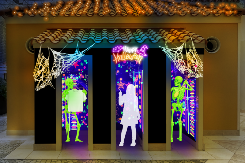 開業5周年の特別なイルミネーションで彩られたメインロビーのアトリウムに、ハロウィーンのモンスターたちが集うフォトスポットが登場!