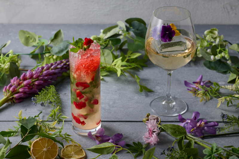 オールデイダイニング「ル・ジャルダン」のディナータイムに、花にちなんだリキュールを使用した2種のオリジナルカクテルを提供します。