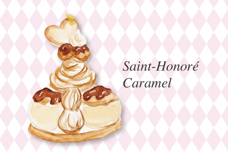 サクサクのアーモンドサブレにキャラメルクリームをたっぷり詰めたシュークリームを重ね、ヘーゼルナッツやミルクチョコレートで飾りました。甘さの中にキャラメルのほろ苦さがアクセント。