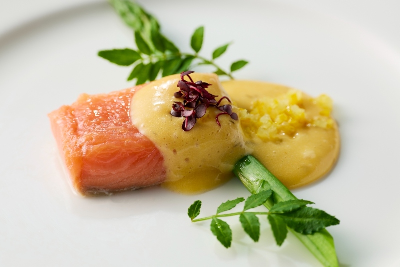 木更津おかそだちサーモンとアスパラガス 日本ハーブのベアルネーズソース