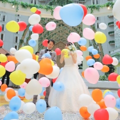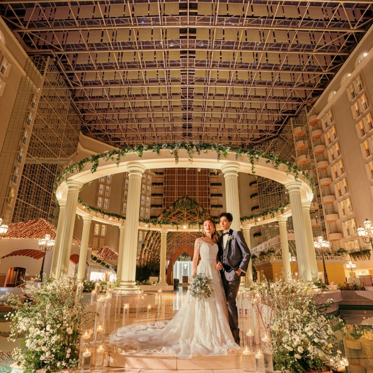 思いをのせて飛ばすランタンに、舞い降りるバルーン、祝福のフラワーシャワー。天候を気にすることなく、どんな日にも、おふたりの思い描いた夢を自由に叶えられる場所です。 -