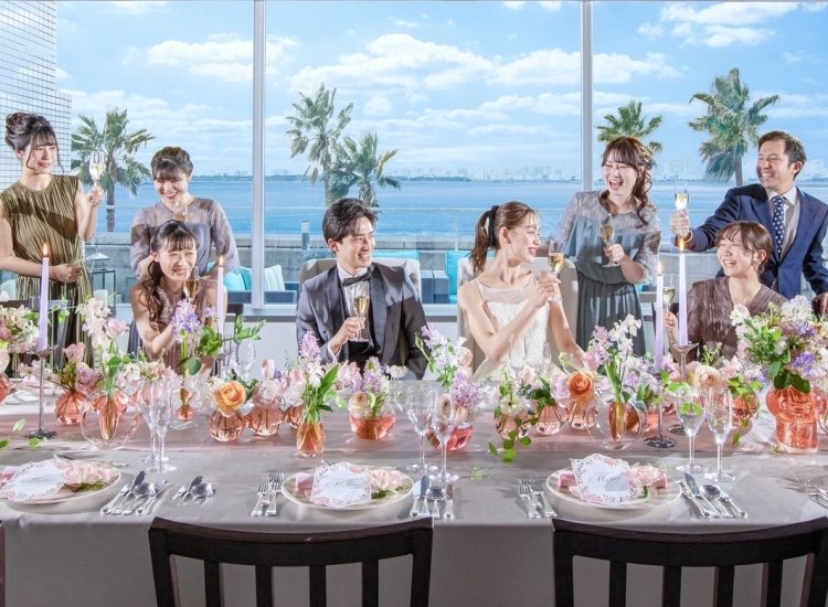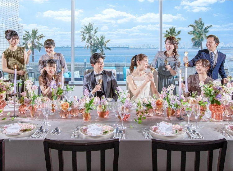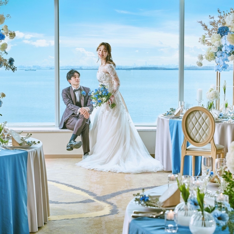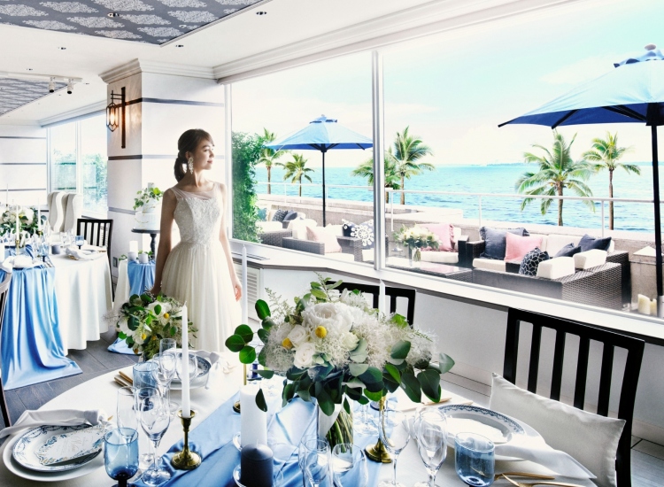 360度の眺望美を誇る最上階のスカイバンケット、空と海を間近に望むテラス付シーサイドバンケット、カーテンが開いた瞬間きっと誰もが息をのむ。絶景のリゾートウエディングを心ゆくまで楽しんで。 -