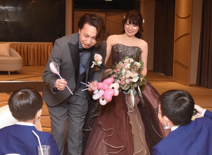 新郎新婦とゲスト、お互いを思う気持ちがあふれるサプライズ盛りだくさんのご披露宴です。