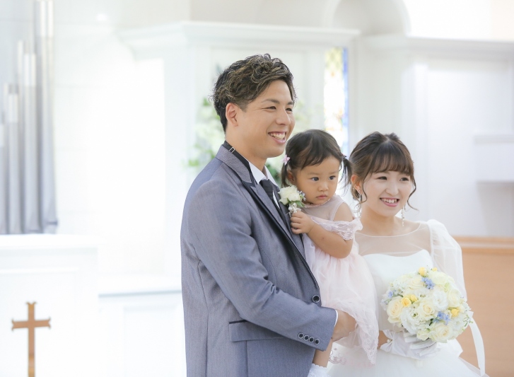 新郎新婦とお子様の最高に幸せなお姿に、ゲストの皆様がほっこり癒される素敵な結婚式。