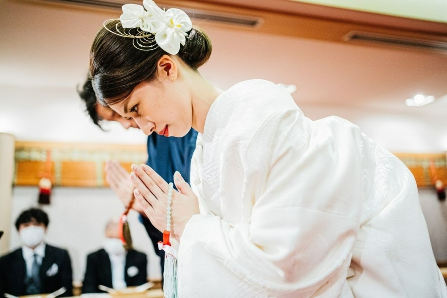 挙式は白無垢、披露宴ではウエディングドレスとカラードレスを着用されたAsukaさん。