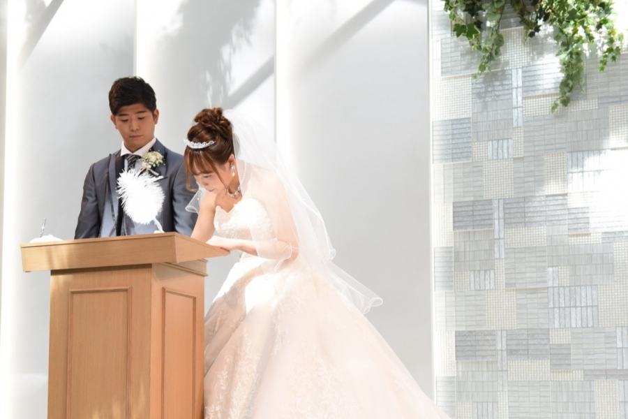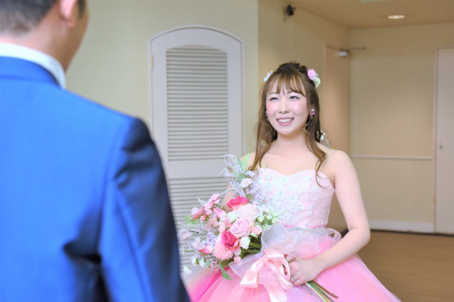優しく肩をたたかれて振り向いたご新郎は、美しいウエディングドレス姿に思わず息を呑みました。