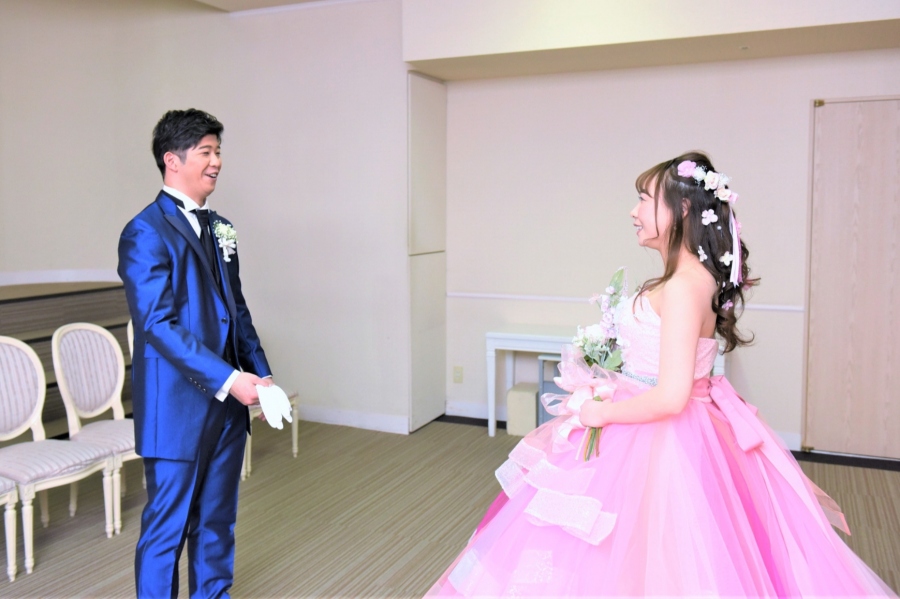 別々の部屋で身支度をしたおふたりが挙式前にその日初めて対面する、ファーストミート。