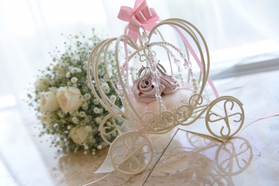 大切な証明書を始め、署名用の羽根ペンに馬車型のリングピローはご新婦がこだわりを持って選ばれたアイテム。