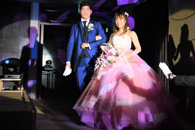 続いて、パーティーを中座してお色直ししたおふたりのセカンドミートの様子を。
