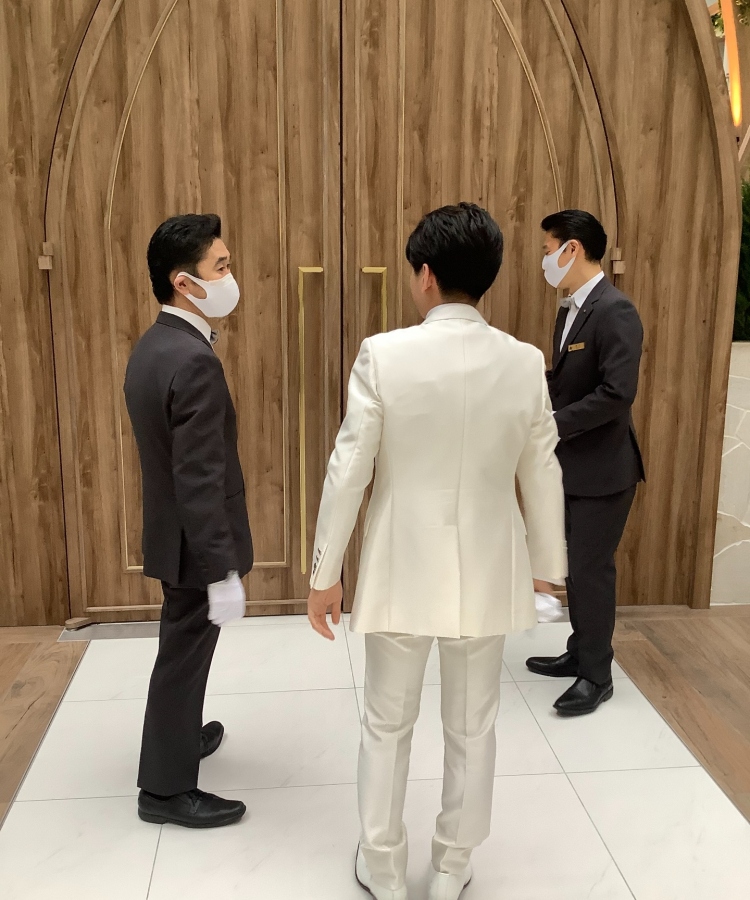 先に入場するご新郎は「行ってくるよ」とご新婦に目を合わせ微笑みます。