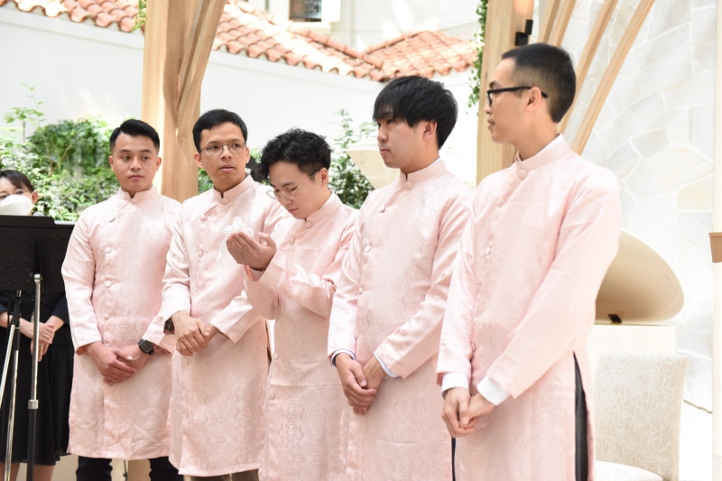 扉が開くと、まずは淡いピンクの民族衣装「アオザイ」を着用した皆さんが歩いてきました。