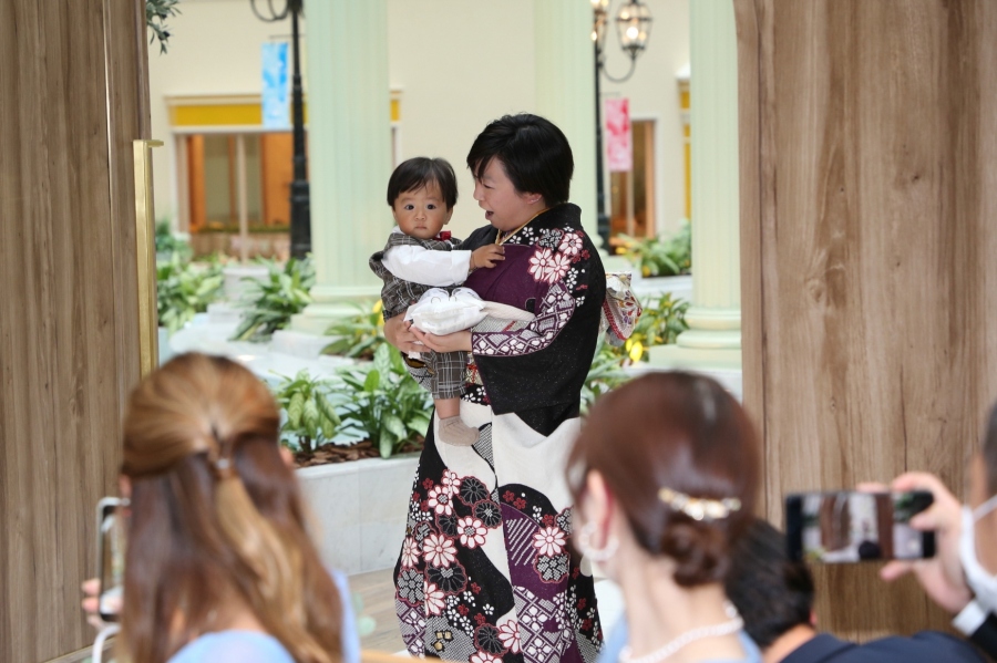 お子様の可愛い姿に、思わず笑顔になっていらっしゃいました。