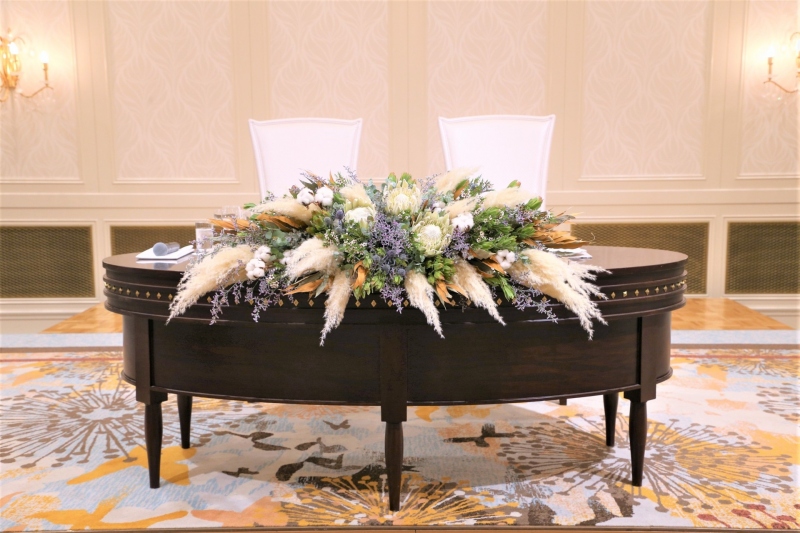 ウエディングドレス・カラードレス・振袖と、3着のご衣裳をお召しになり、花嫁の美しいお姿をたくさんご披露いただきました。