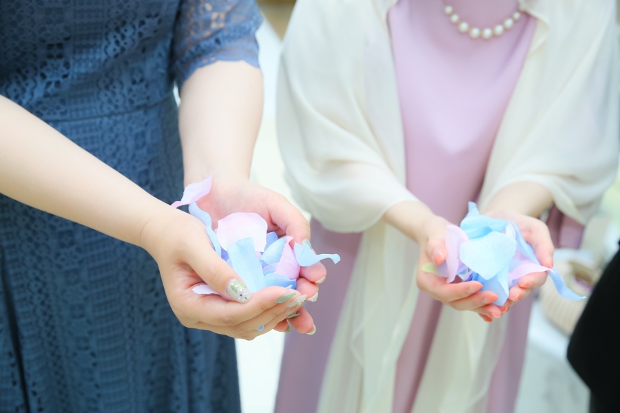 淡いピンクとブルーの花びらが両手いっぱいに!