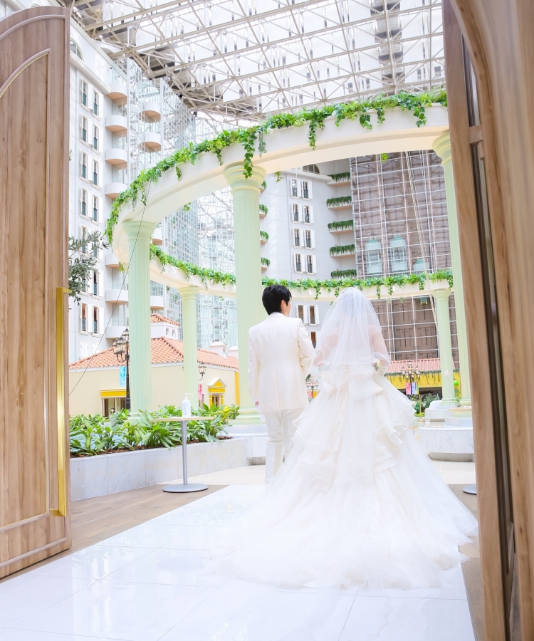 「おめでとう」とゲストから声を掛けられながら、大きな扉が開きご退場です。