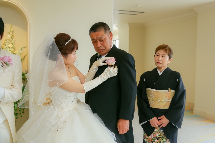 - 挙式前の親族控室にて。 ブートニアセレモニーはお父様にとって最高のサプライズ!