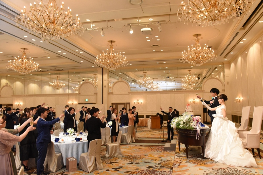 乾杯のタイミングで一斉にポンポンッと響くシャンパンオープンの音はご披露宴の開宴を告げる華やかな演出。