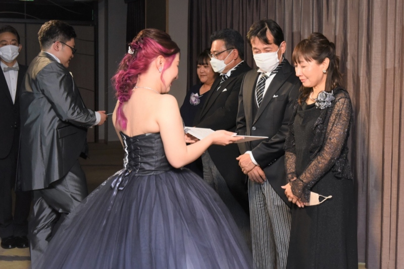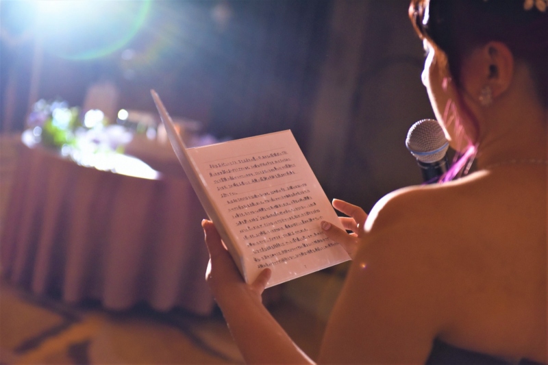 親しいゲストの前とはいえ、手紙を読むのは照れくさくて恥ずかしいもの。