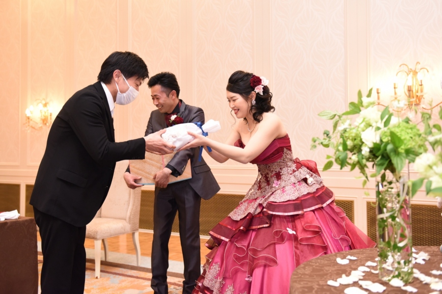 こちらはおふたりからご新婦のお父様とお義母様へのプレゼントです。