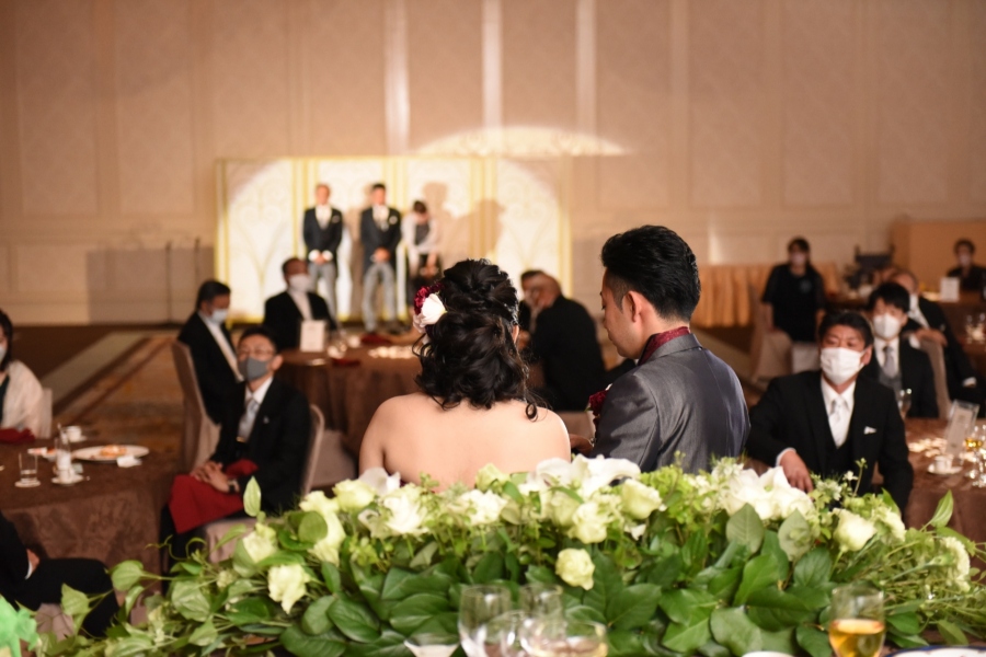 スポットライトを浴びて輝く新郎新婦の晴れ姿にご家族も目を細められます。