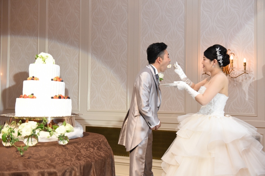 驚くと同時に照れたご様子を見せつつも、嬉しそうにケーキ入刀と続くファーストバイトもなさいました。