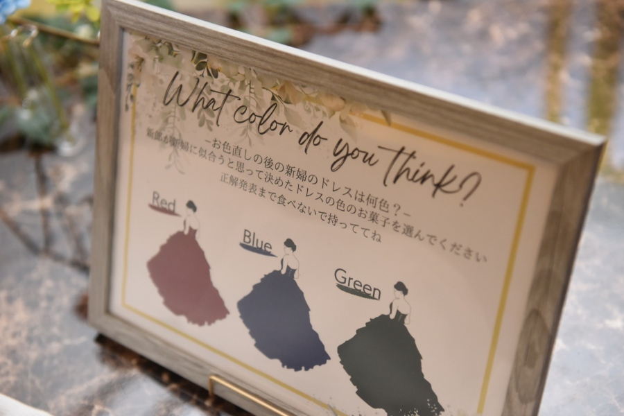 予想したドレスと同じ色のミニ餅を皆さまに選んでいただきます。