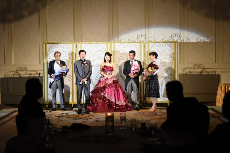 スポットライトを浴びて輝く新郎新婦の晴れ姿にご家族も目を細められます。