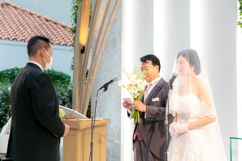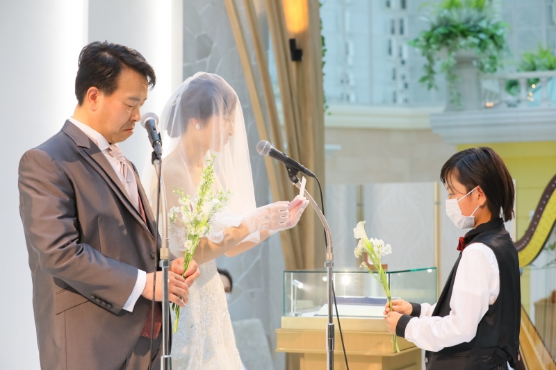 花束を手に、おふたりが永遠の愛を誓っていただきます。