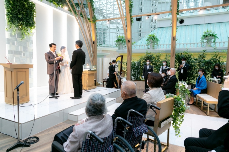 挙式直前、司会者の声掛けで皆さまが一斉にお手紙に目を通します。