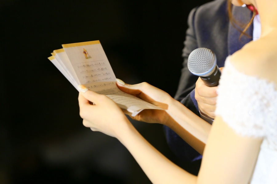 あふれ出そうになる涙をこらえながら、ひとつひとつの言葉をかみしめるように手紙を朗読されるお姿に、ご両親やゲストの皆さまもあたたかい雰囲気につつまれます。