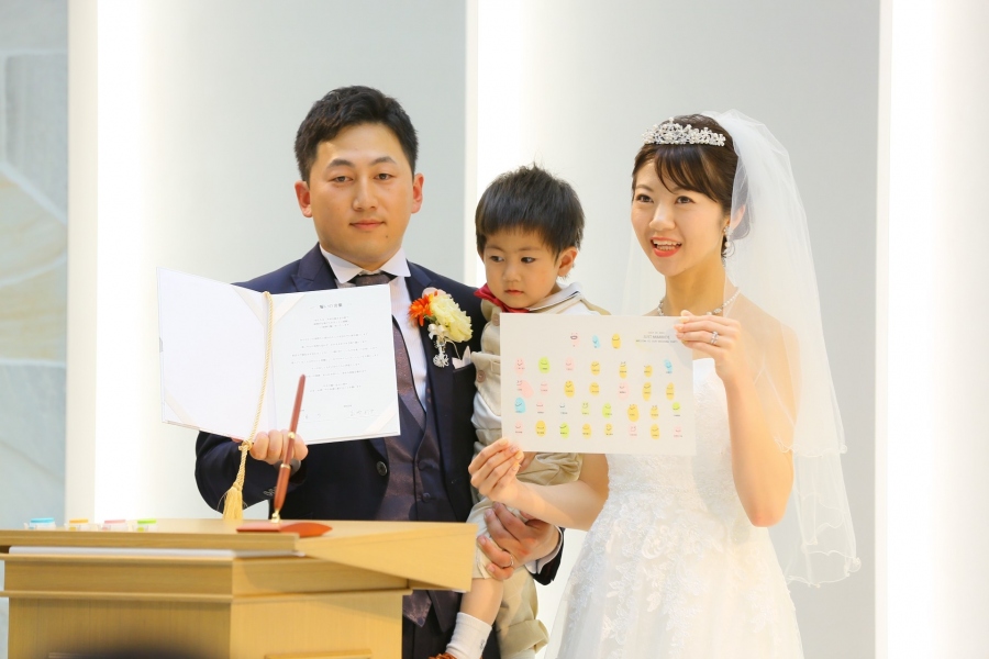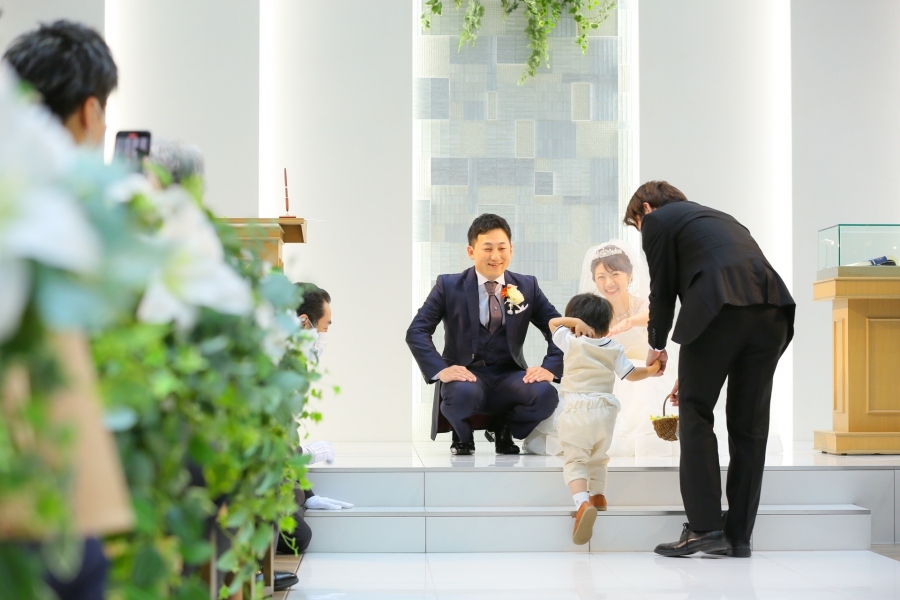 「子どもも一緒に挙式に参加してほしい!」というご希望から、おふたりのお子さまにもご活躍いただけるよう、様々な演出を盛り込める人前式を選択なさいました。