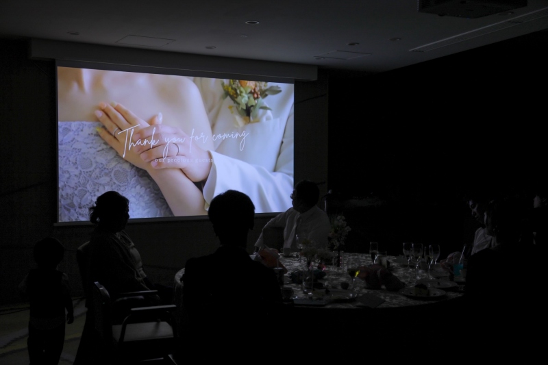 そして新郎新婦ご退場後には、ゲストおひとりおひとりへのメッセージ付きのムービーを上映。