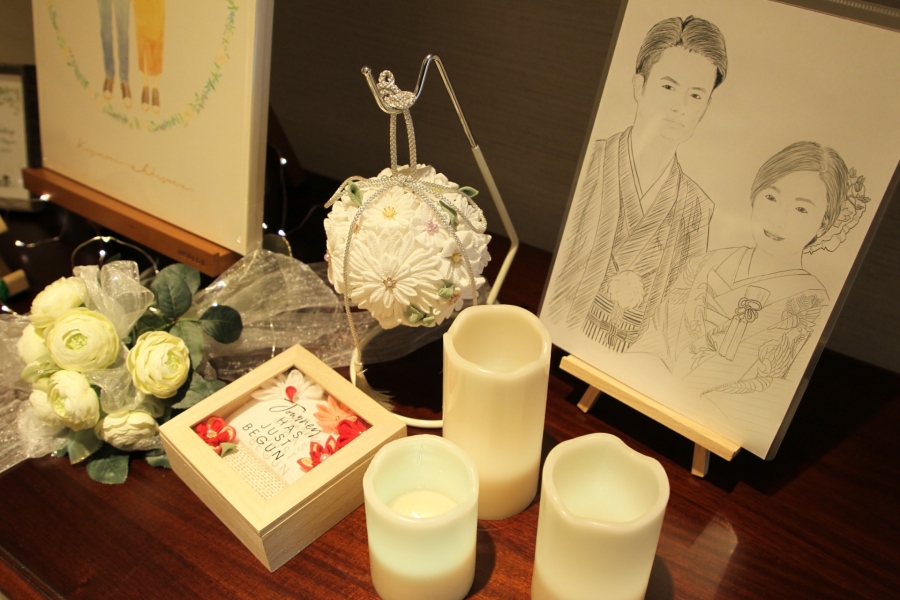 披露宴会場入り口に飾られた、素敵な似顔絵はご友人の手作りです!