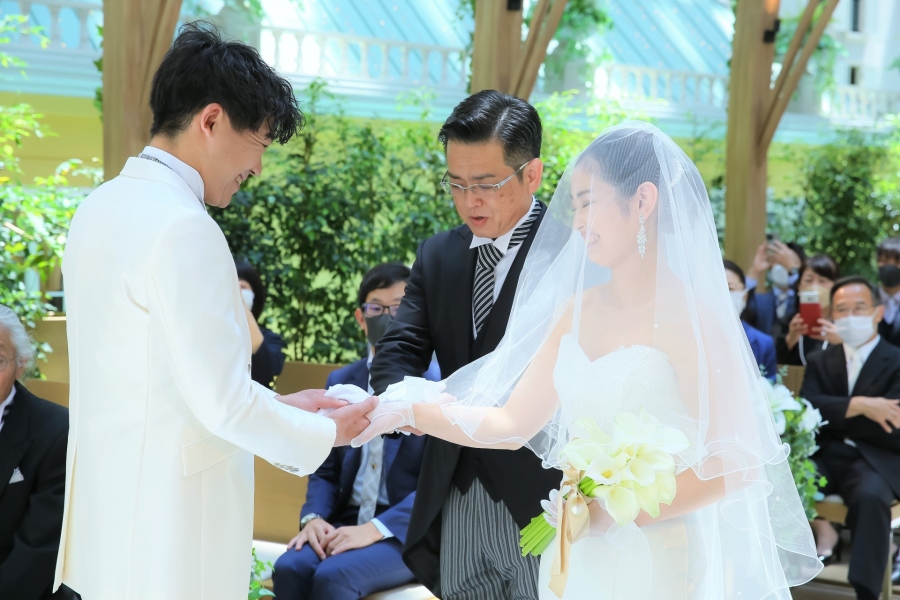 新しい家族となるご新郎へ、ご新婦の手を力強く渡してくださったお父様。