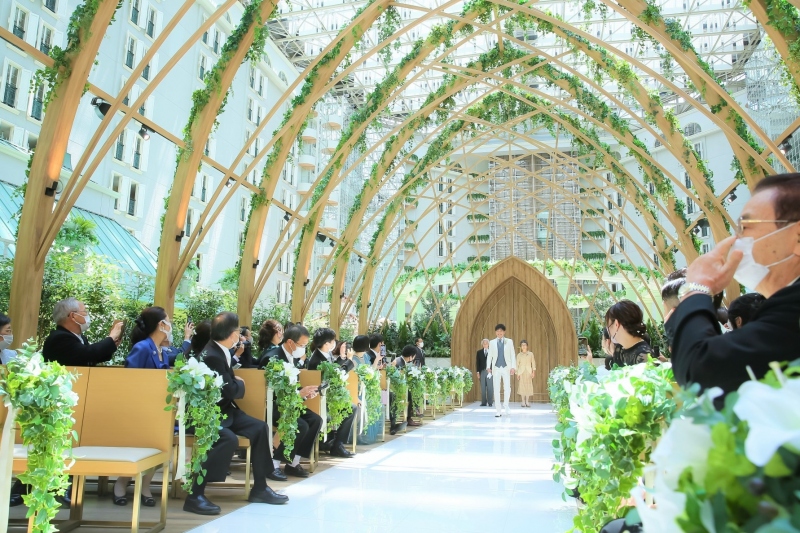 見学の際、「想像通りでとても良かったです!」とおっしゃっていただけた、アトリウムチャペル「La Joie(ラ ジョア)」で誓いを立てます。