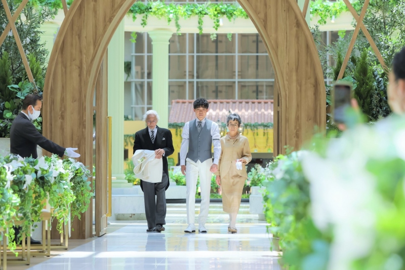 ご新郎は入場演出として「ジャケットセレモニー」で親御様にご登場いただくよう、お願いなさっていました。