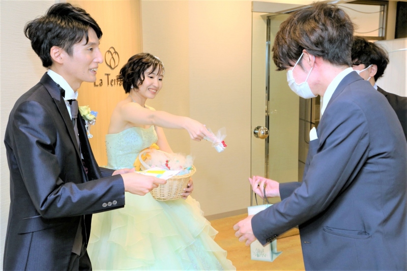 - 呼びかけに初めは恥ずかしいご様子でしたが、すぐさまご新郎の横へスタンバイ。