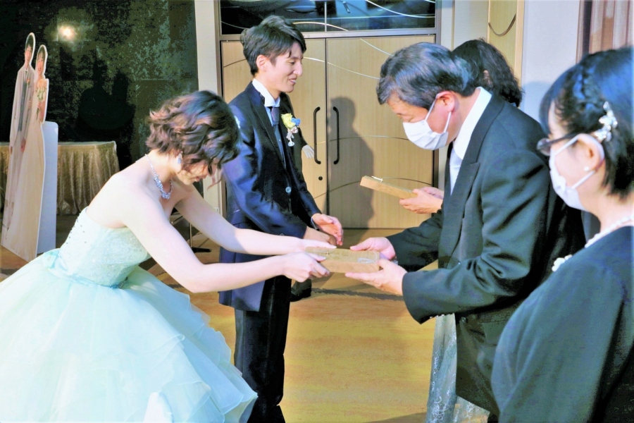 ご両家を結び、同じ時を刻む時計をそれぞれひとつずつ持つことで、「離れていても絆で繋がっている」というメッセージが込められています。
