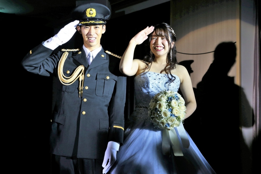 ご新郎はお勤め先の儀礼服をお召しになり、ぱりっと引き締まる凛々しいお姿をご披露いただきました。
