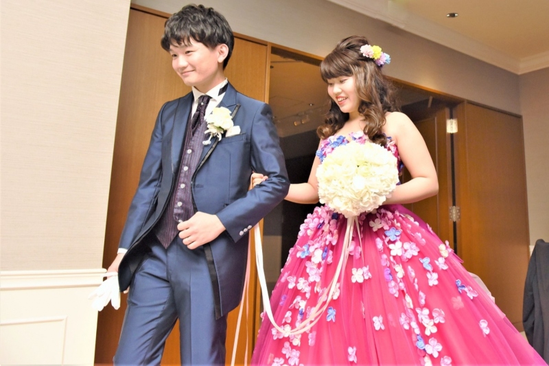 さらに、カラードレスもお花につつまれた1着を選び、華やかな可愛らしさを纏われたご新婦。