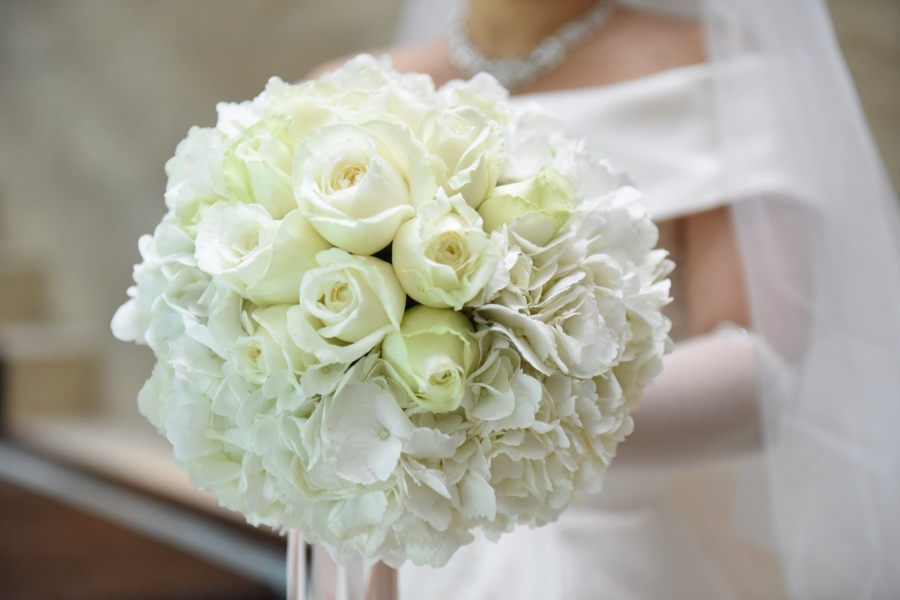 結婚式当日には、ウエディングドレスに合わせた純白のブーケで挙式に臨まれます。