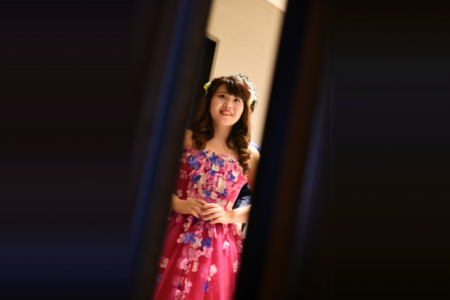 鮮やかなラズベリーピンクはお顔周りをさらに華やかに彩り、輝く笑顔を見せてくださいました。