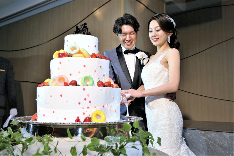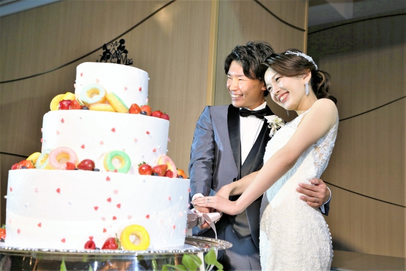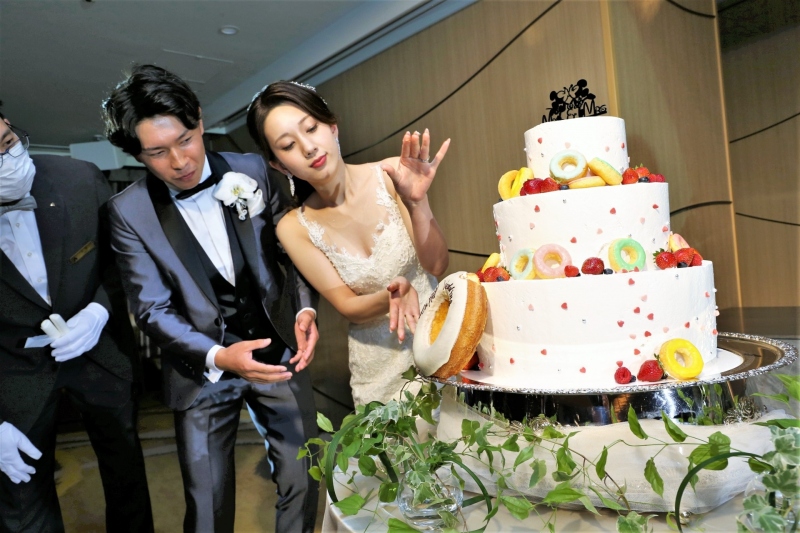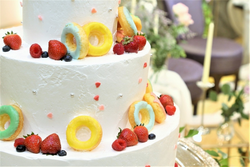 ケーキ入刀もしたいし豪華な3段ケーキにも憧れるし、ドーナツタワーもしてみたい!とのおふたりのご希望から