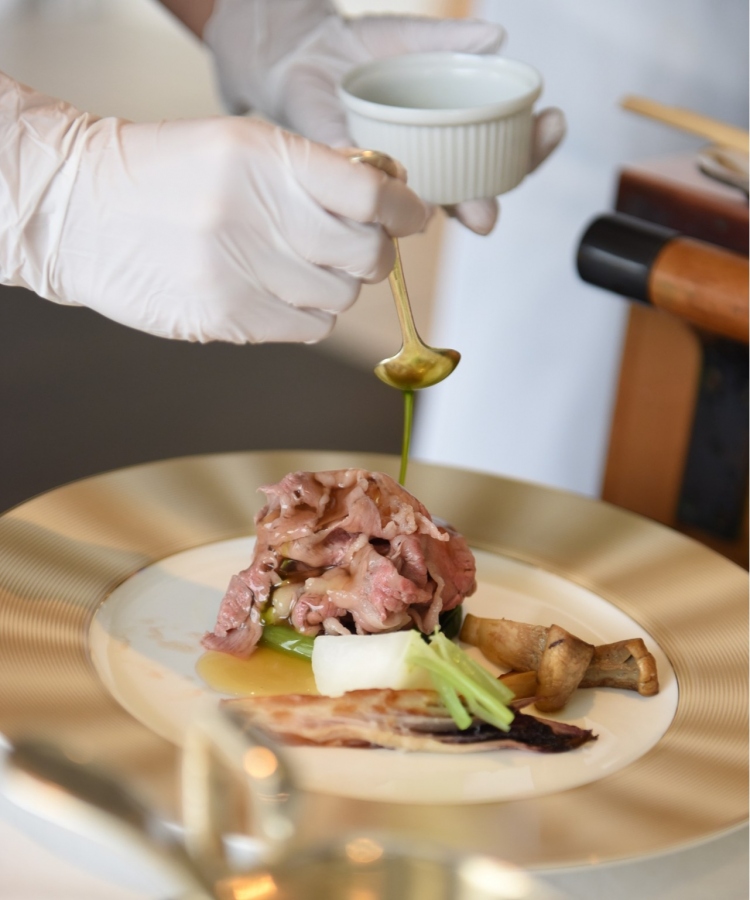 シェフが目の前で「和牛のしゃぶしゃぶ」を仕上げます。