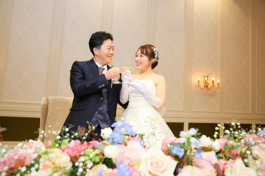 今回ご紹介するのは、前撮りの色打掛から結婚式当日のカラードレス、会場コーディネートまで、キュートでふわっと優しいピンクで統一した Atsushiさん & Sayumiさんのウエディングです。