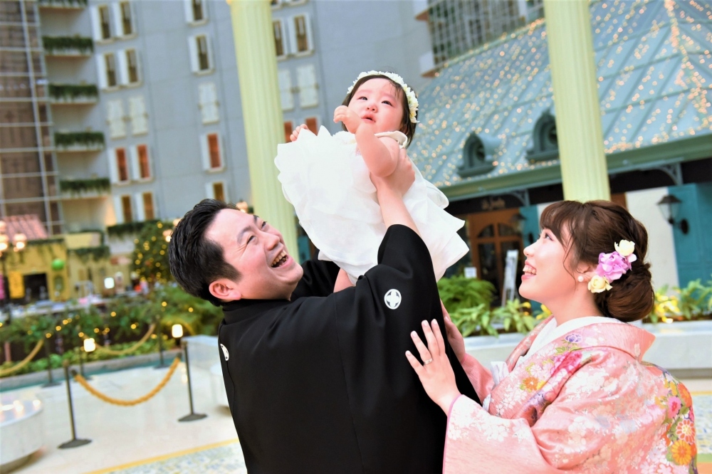 一緒におめかしした可愛らしいお子さまとのスリーショットも撮影なさいました。