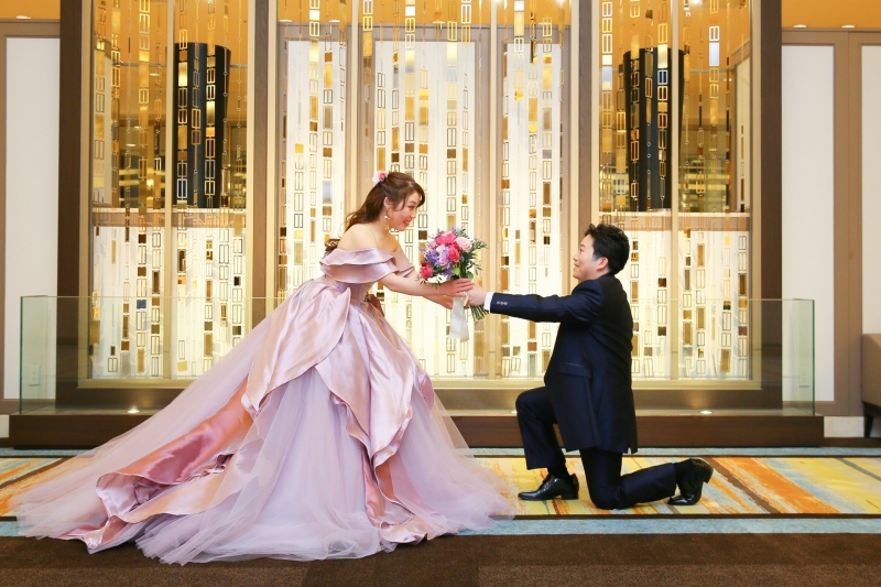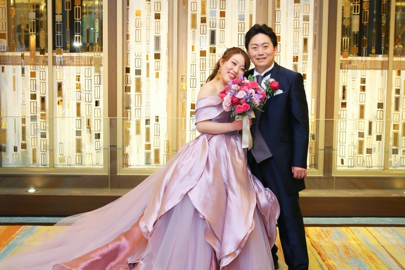 今回ご紹介するのは、前撮りの色打掛から結婚式当日のカラードレス、会場コーディネートまで、キュートでふわっと優しいピンクで統一した Atsushiさん & Sayumiさんのウエディングです。