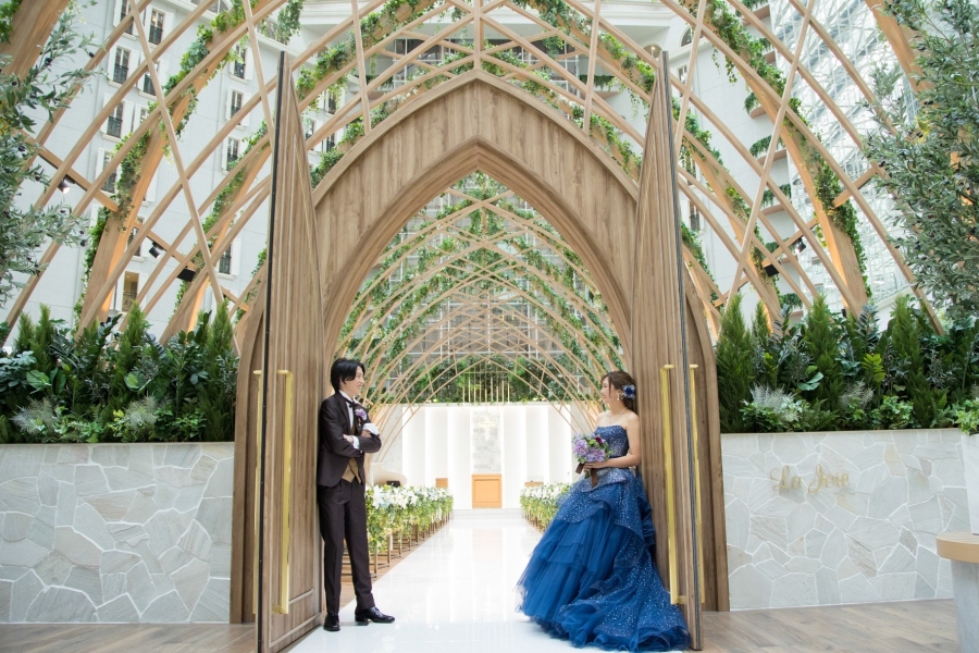 今回はそんなアトリウムで、海外ウエディング風のロケーションフォトを1日かけて楽しまれたおふたりをご紹介いたします。