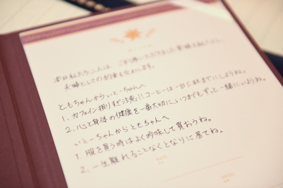 おふたりはご自分たちらしい「誓いの言葉」を用意なさいました。